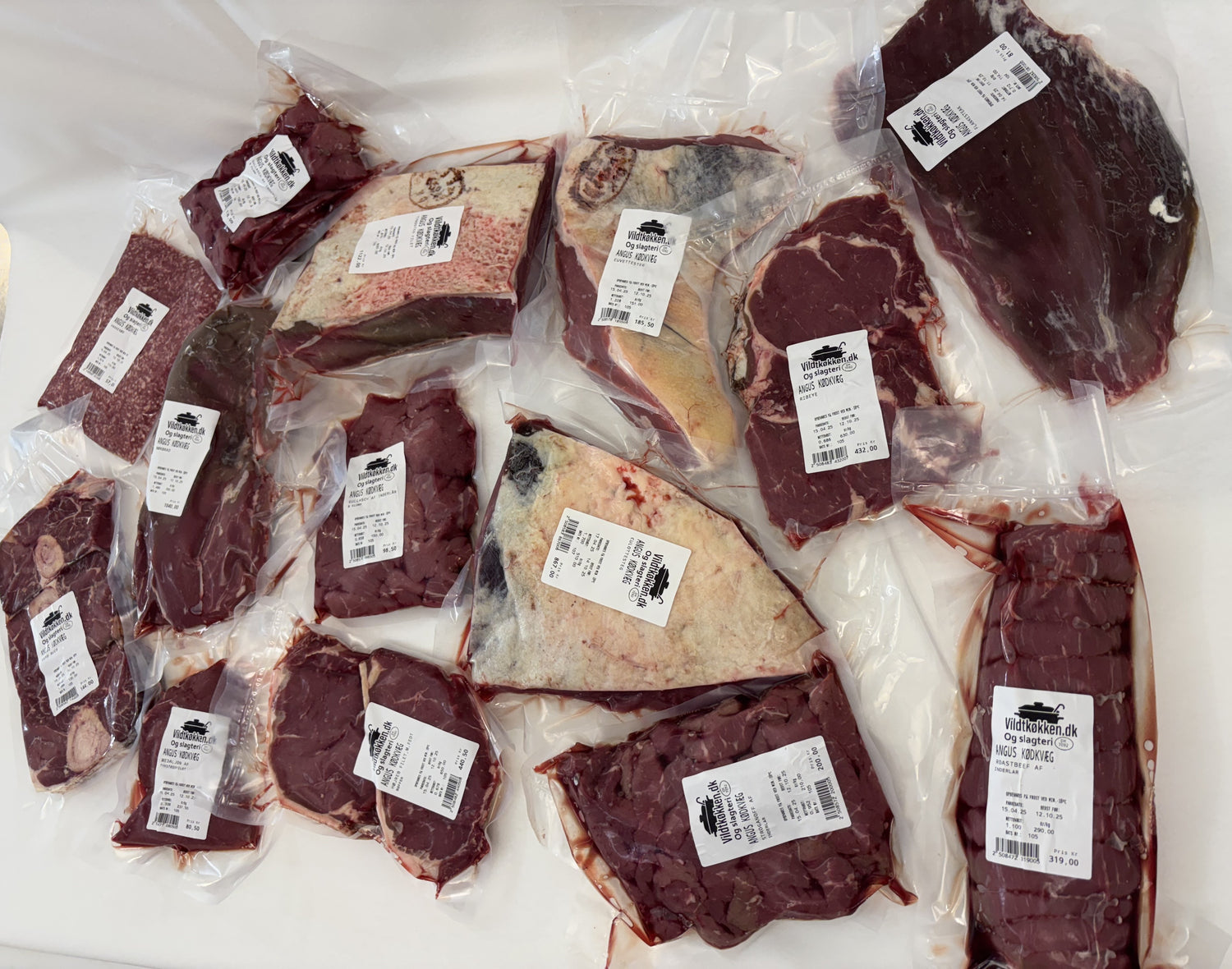 Vi forhandler et bredt sortiment af kød af høj kvalitet, herunder kronvildt, dåvildt, vildsvin, muflon, Okse, får, grise og meget mere. Vores vildtkød er bæredygtigt, smagfuldt og et naturligt valg for dem, der ønsker en autentisk og velsmagende spiseoplevelse.
